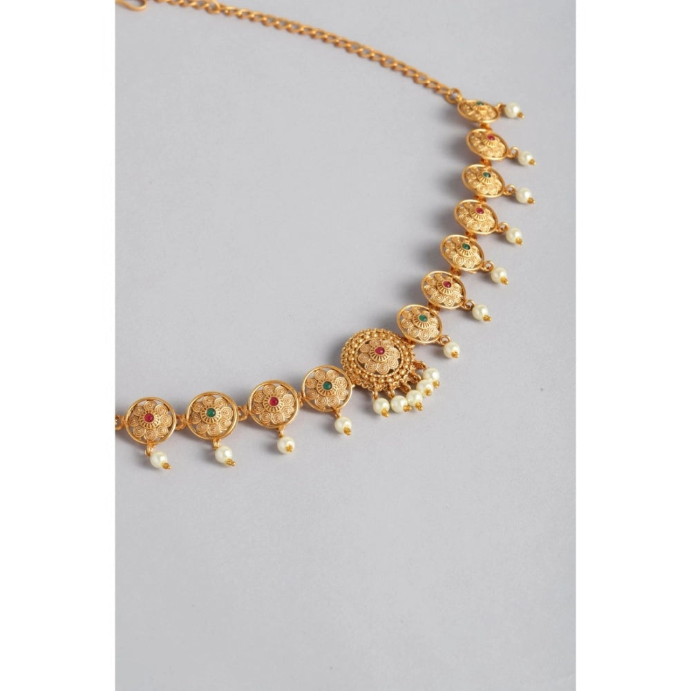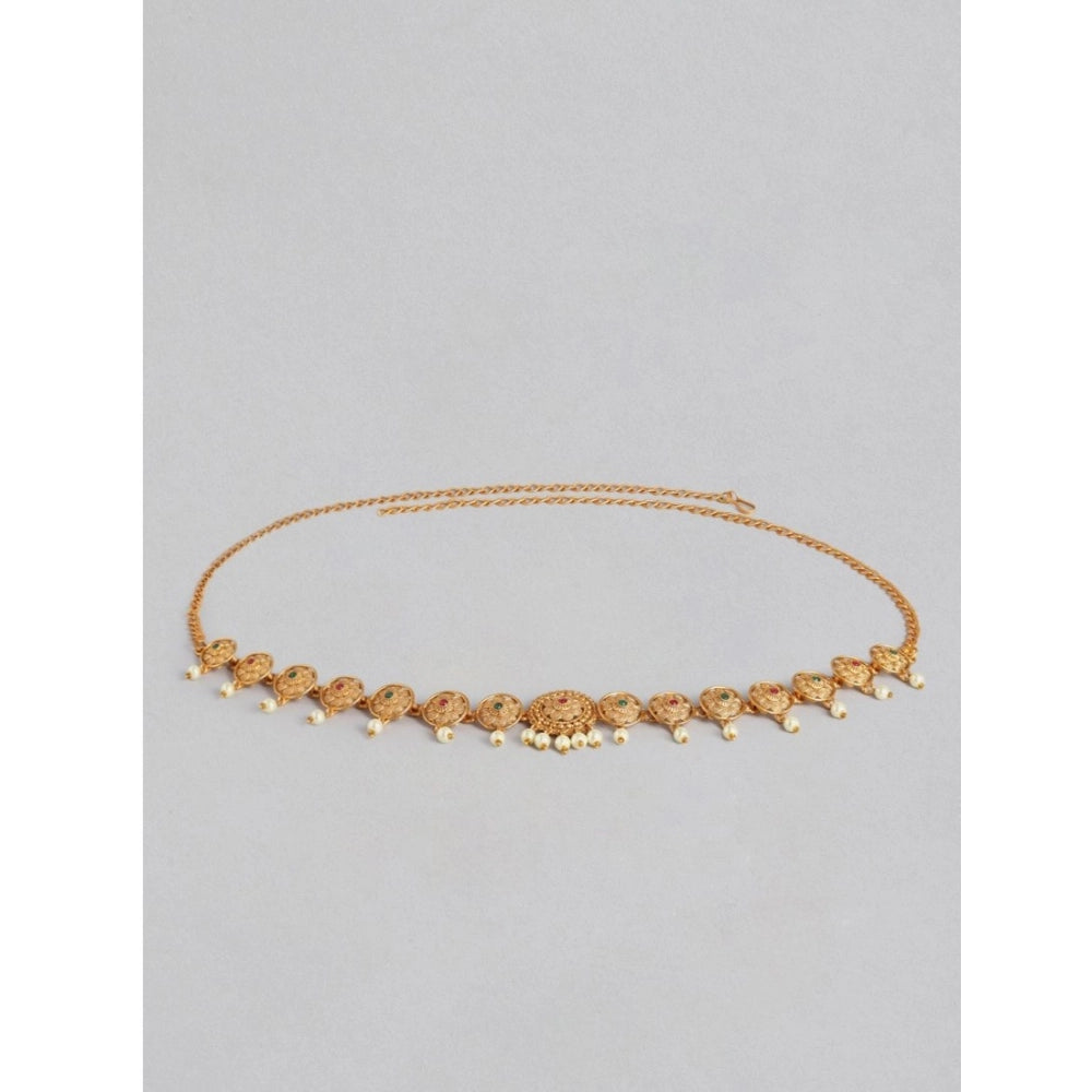 Mayawye Women's Rose Gold Plated Alloy Hip Belt Kamarband (Red & Green)