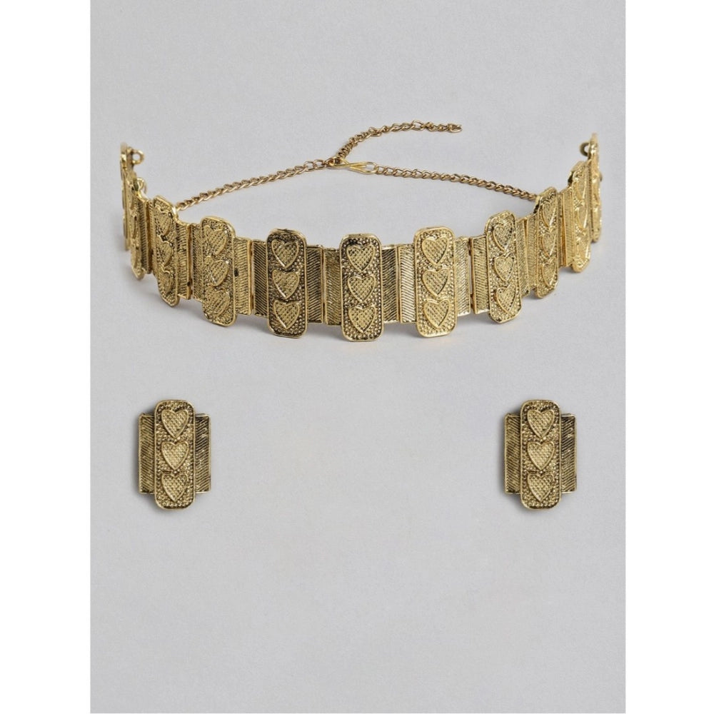 Mayawye Women's Rose Gold Plated Alloy Necklace & Earings Set (Gold)