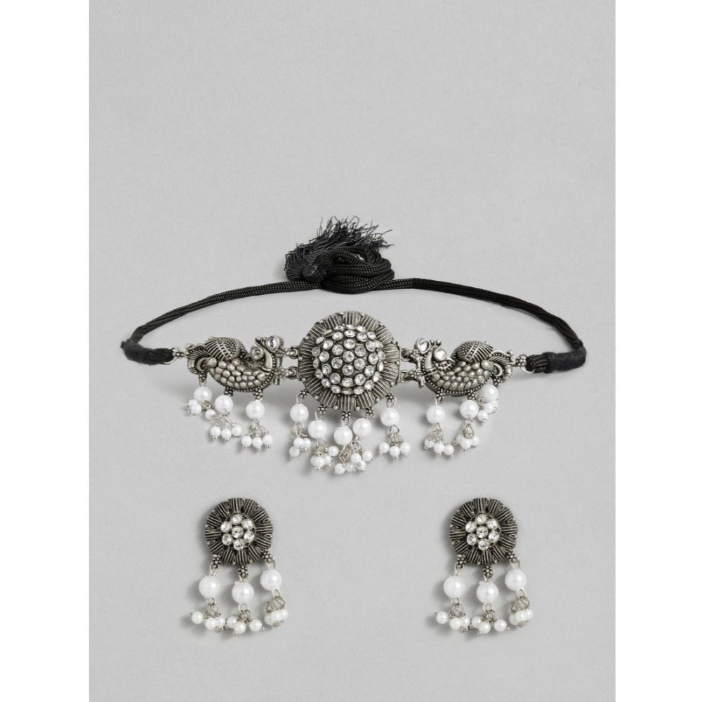 Mayawye Women's Rose Gold Plated Alloy Necklace & Earings Set (Silver & White)