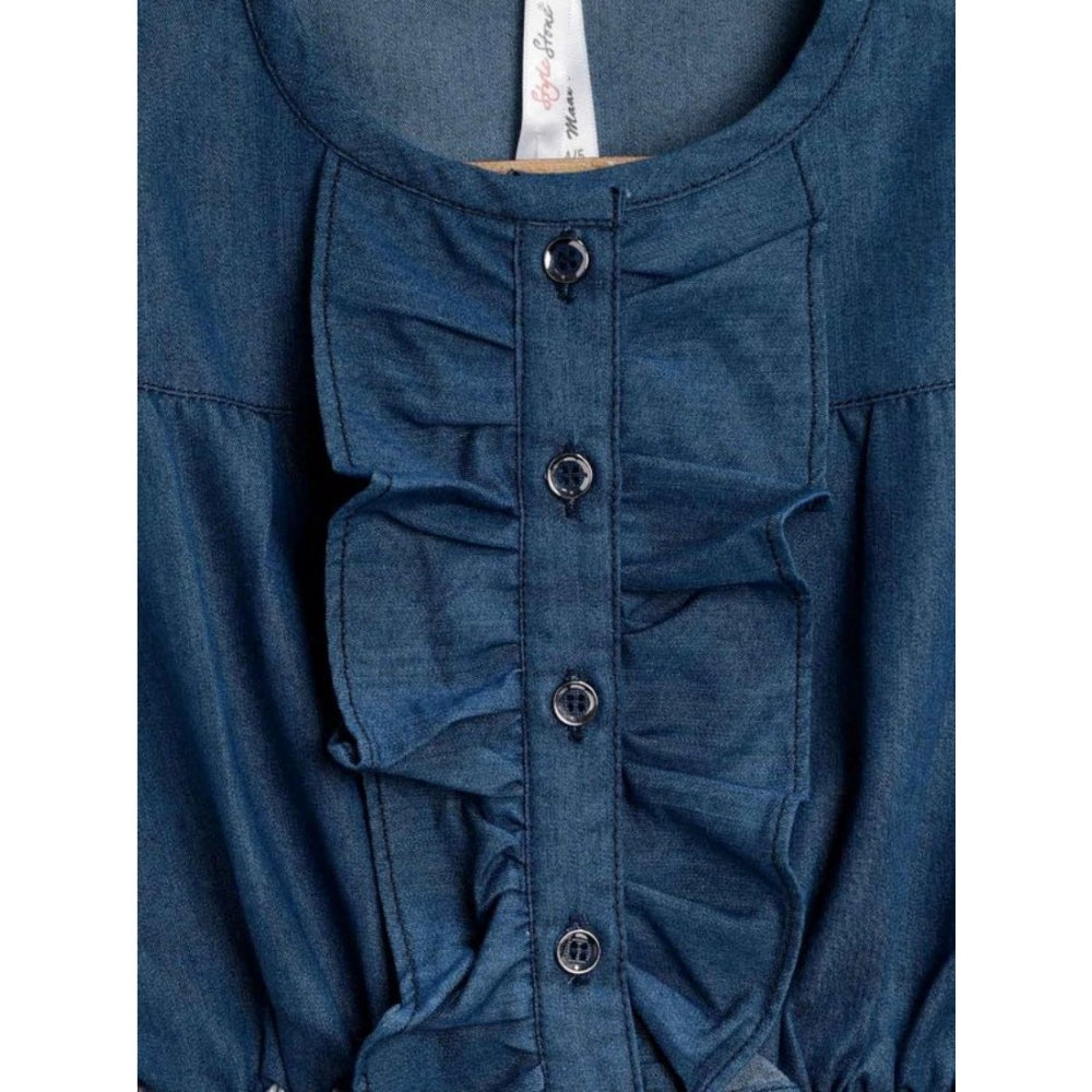 Mayawye Girl's Denim-Cotton Floral Printed Sleeveless Round Neck Dress (Multicolor)