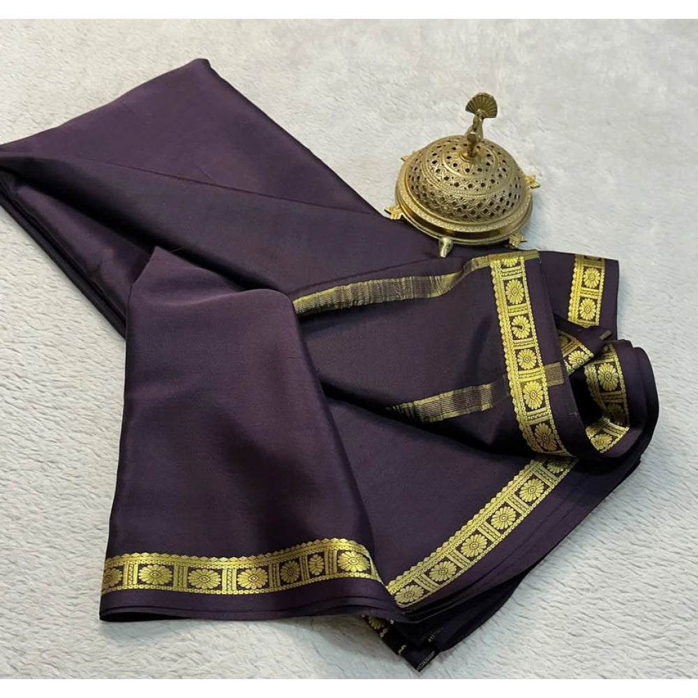 Mayawye Women's Crepe Chit Pallu Solid Saree With Unstitched Blouse 5.5Mtr (Grey)