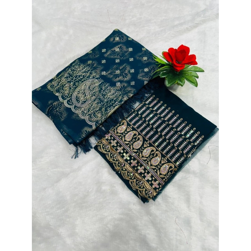 Mayawye Women's Embroidered Georgette Saree With Unstitched Blouse (Dark Blue, 5-6 Mtrs)