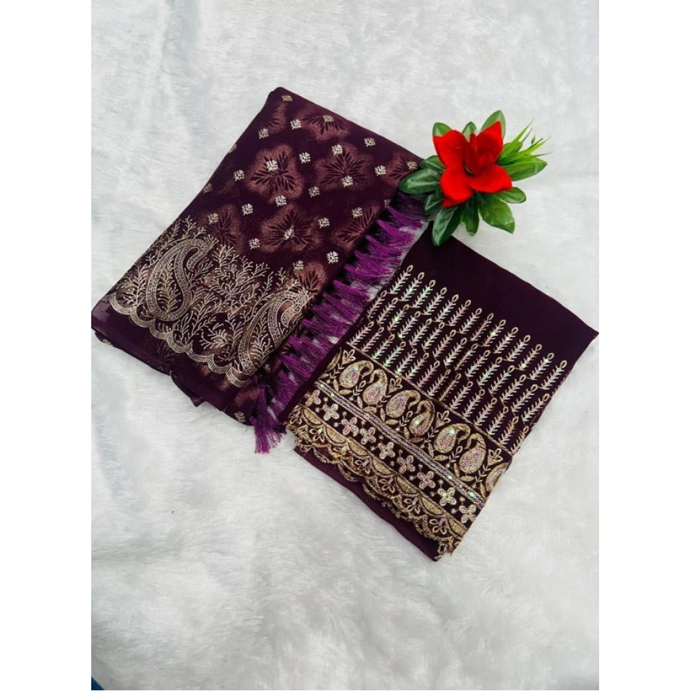 Mayawye Women's Embroidered Georgette Saree With Unstitched Blouse (Magenta, 5-6 Mtrs)