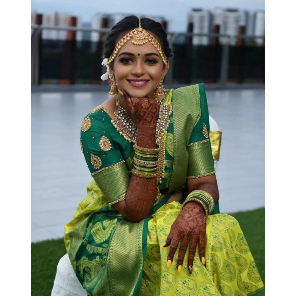 Mayawye Women's Litchi silk Printed Saree With Unstitched Blouse (Light Green)