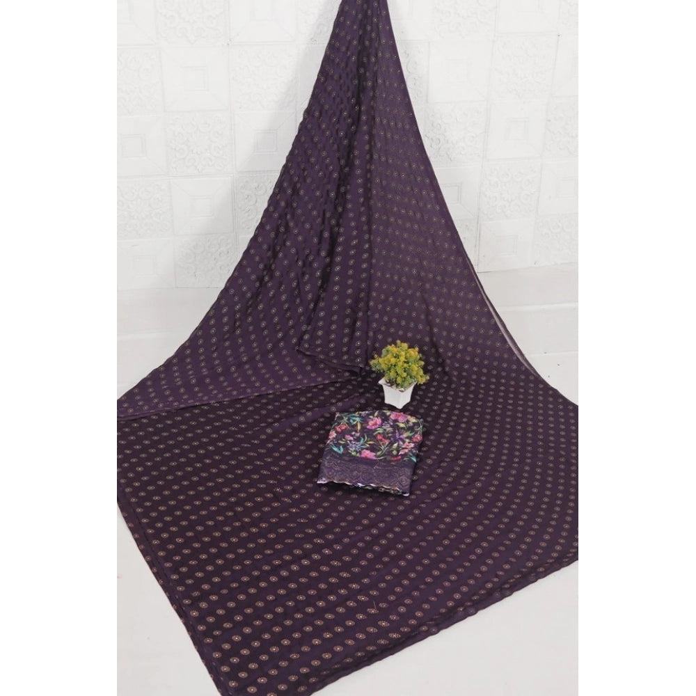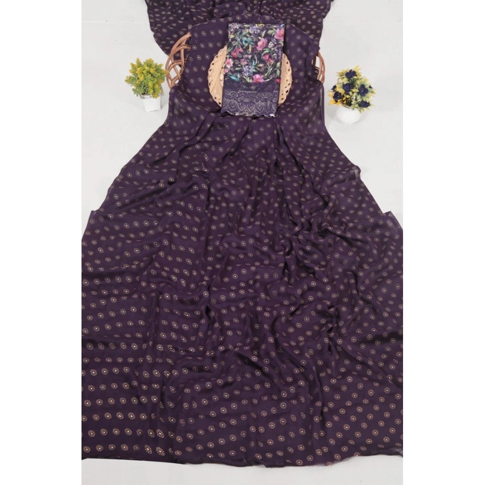 Mayawye Women's Printed Brasso Saree With Unstitched Blouse (Magenta, 5-6 Mtrs)