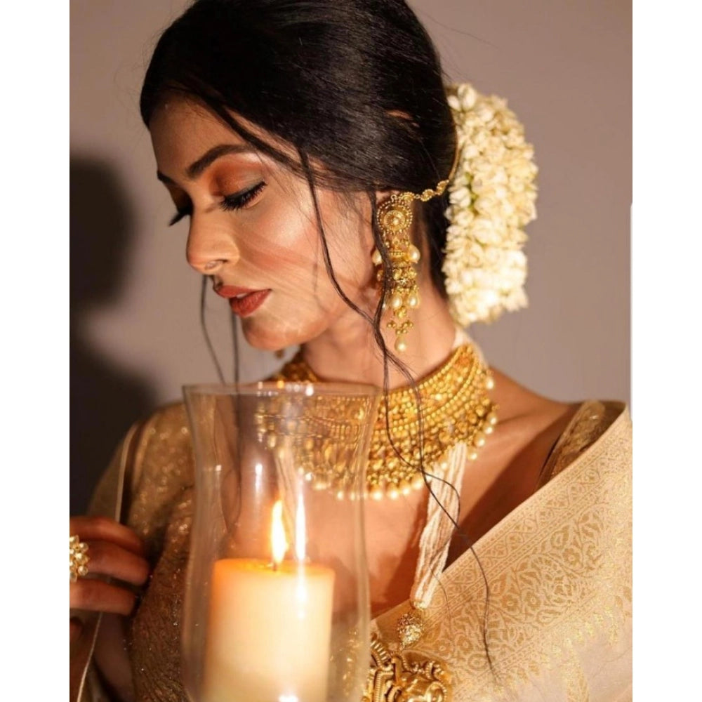 Mayawye Women's Soft Lichi Silk Printed Saree With Unstitched Blouse 5.5Mtr (Golden)