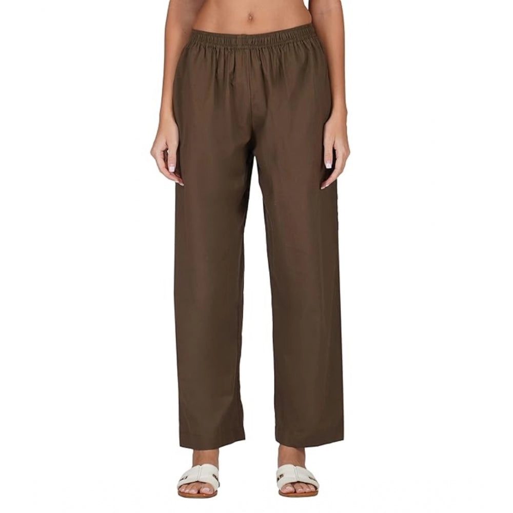 Mayawye Women's Casual Cotton Cambric Solid Elastic Palazzo Trousers (Brown)