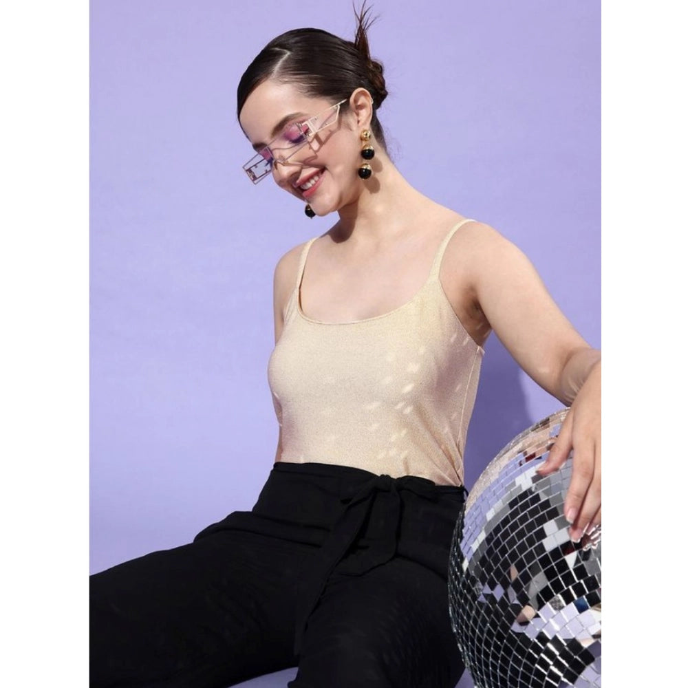 Mayawye Women's Polyester Embellished Sleeveless Jumpsuit (Gold - Black)