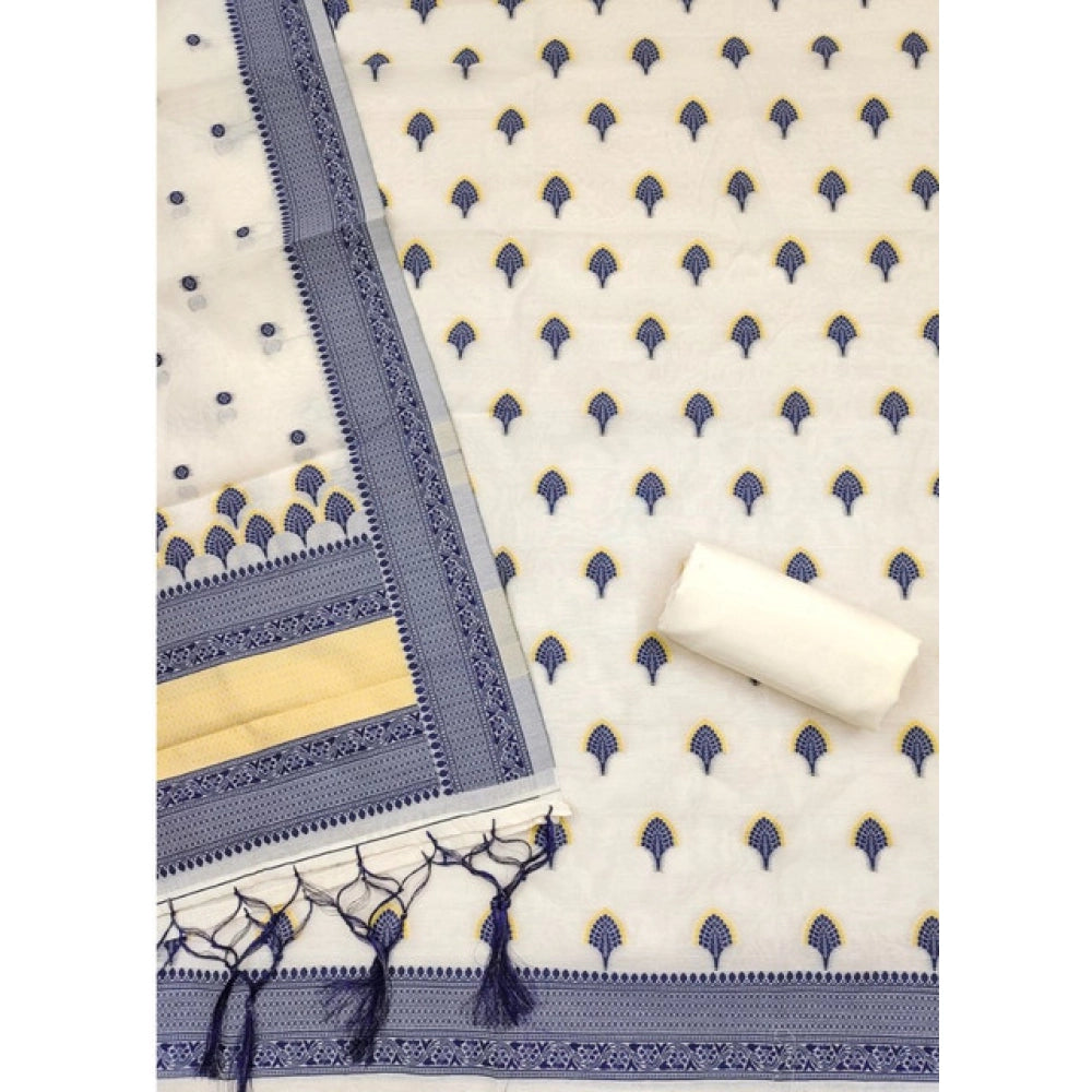 Mayawye Women's Banarasi Silk Printed Unstitched Salwar Suit Material With Dupatta (Navy Blue, 3Mtrs)