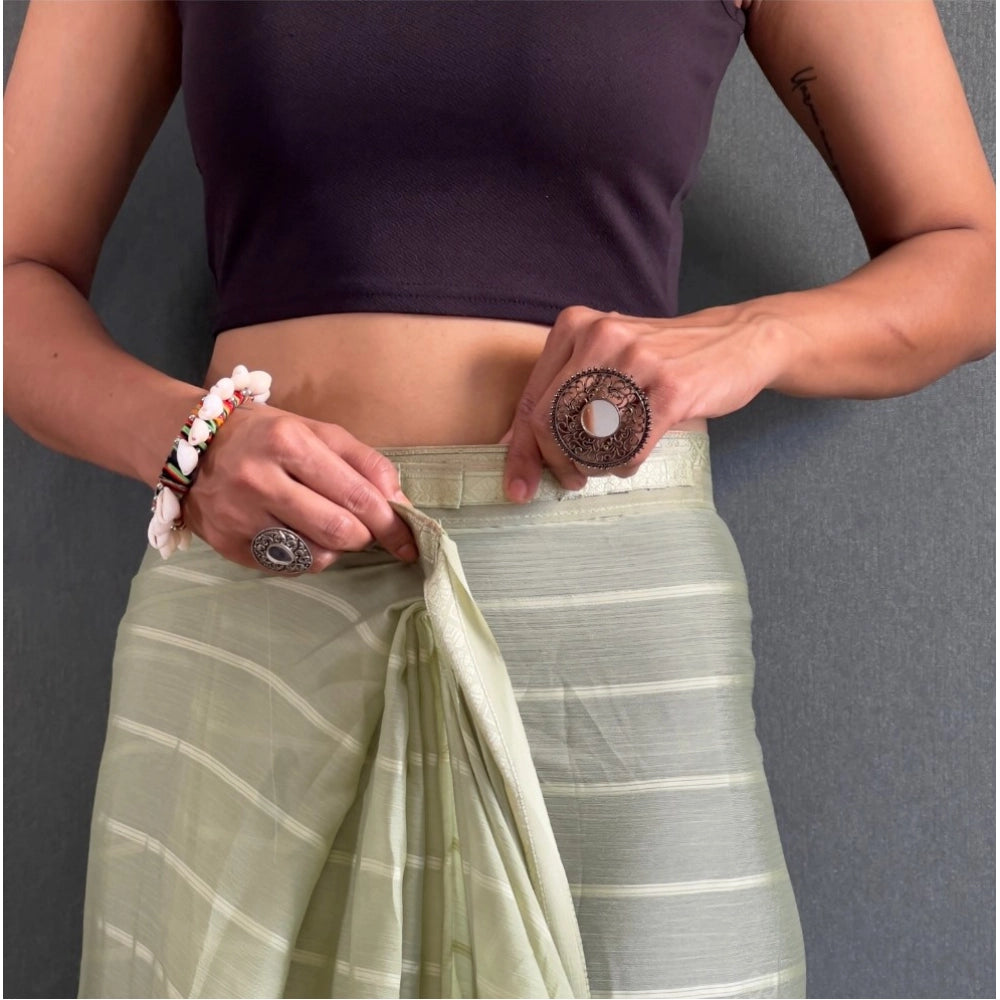 Mayawye Women's Chiffon Striped Ready to wear Saree With Unstitched Blouse 5.5 Mtr (Pista )