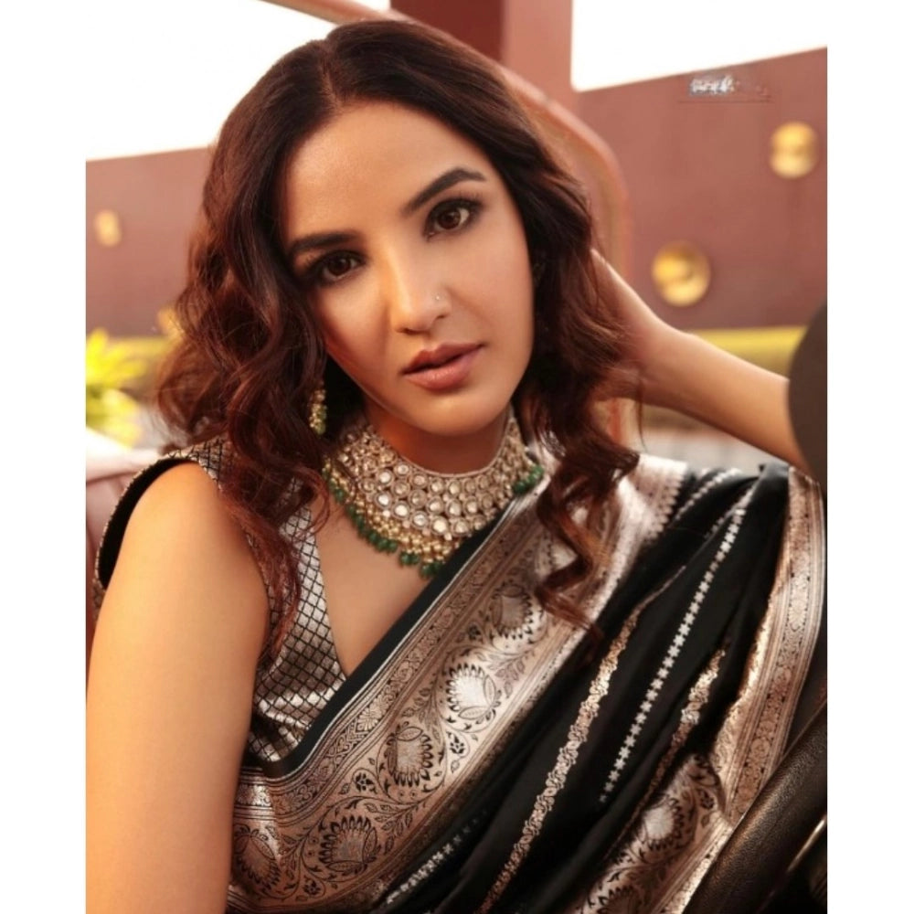 Mayawye Women's Silk Printed Saree With Unstitched Blouse 5.5Mtr (Black)