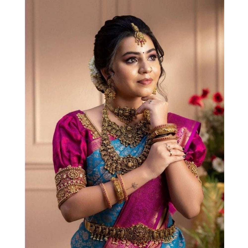 Mayawye Women's Soft Litchi Silk Jacquard Work Saree With Unstitched Blouse 5.5Mtr (Dark Blue)