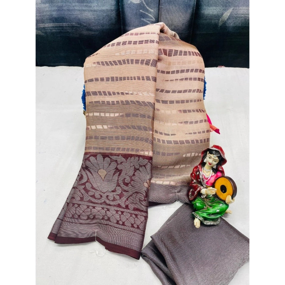 Mayawye Women's Viscose Rayon Printed Saree With Unstitched Blouse (Brown)